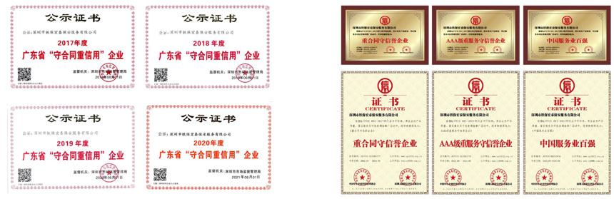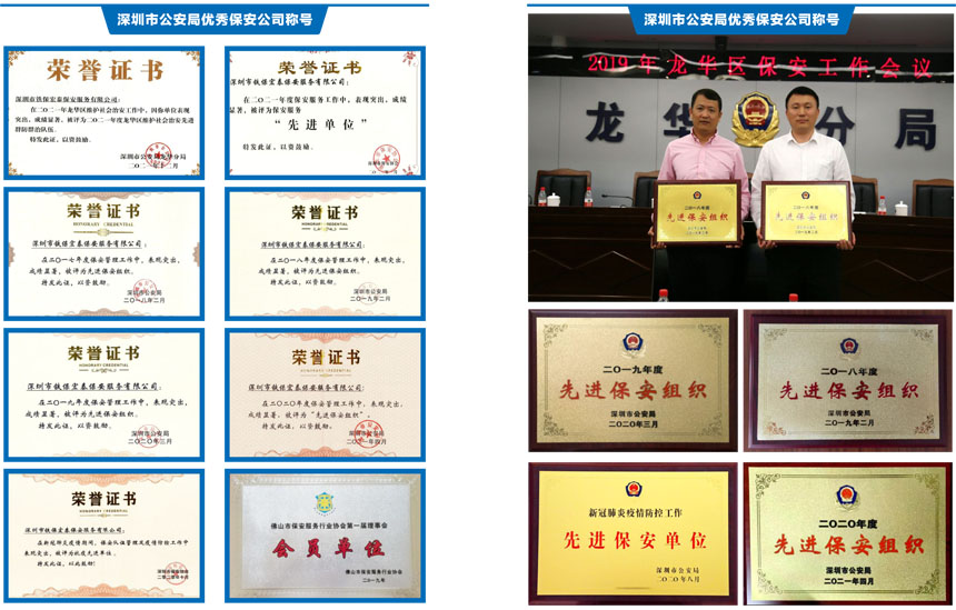 榮獲2017-2023年度深圳市公安局優秀保安公司,深圳市保安協會常務理事單位(十大常務理事單位之一)