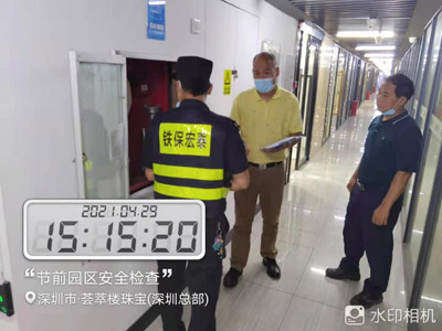 為切實做好客戶園區公司五一期間的安全生產和消防安全工作,確保園區消防安全形勢穩定。鐵保宏泰深圳保安公司安保人員開展五一安全大檢查行動,鐵保宏泰保衛科協同保安對所入駐客戶單位的安全隱患和消防安全進行全面的檢查!