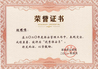 榮獲2017-2023年度深圳市公安局優(yōu)秀保安公司,深圳市保安協(xié)會常務(wù)理事單位(十大常務(wù)理事單位之一)