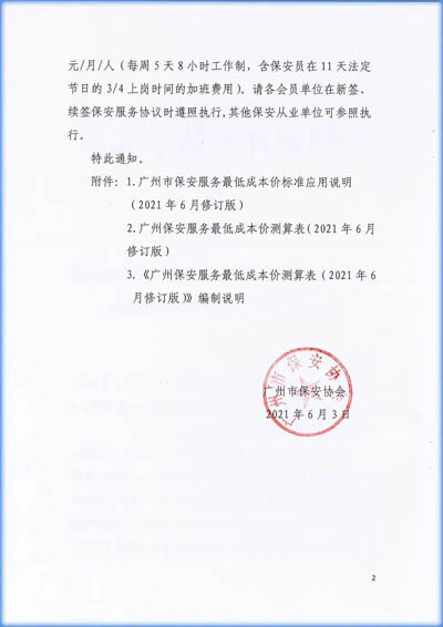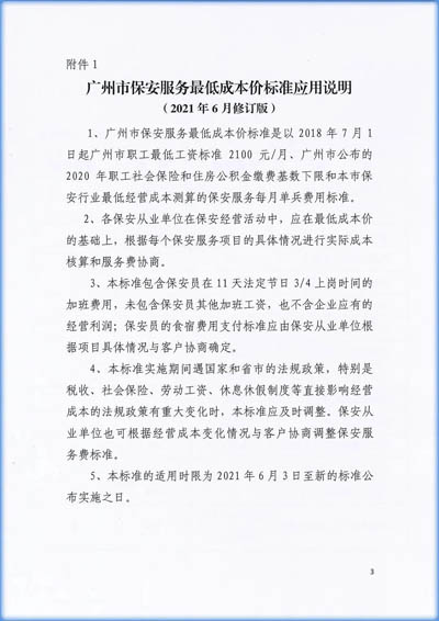 廣州市保安協會發布《廣州市保安服務最低成本價標準(2021年6月修訂版)》